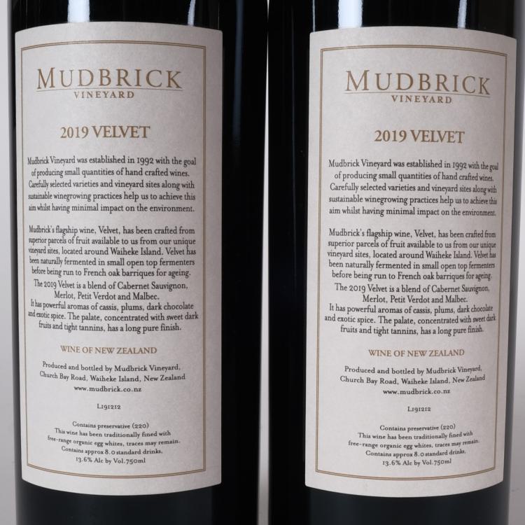 Lot 58 of 502: (2) 2019 Mudbrick Vineyard Velvet, Waiheke