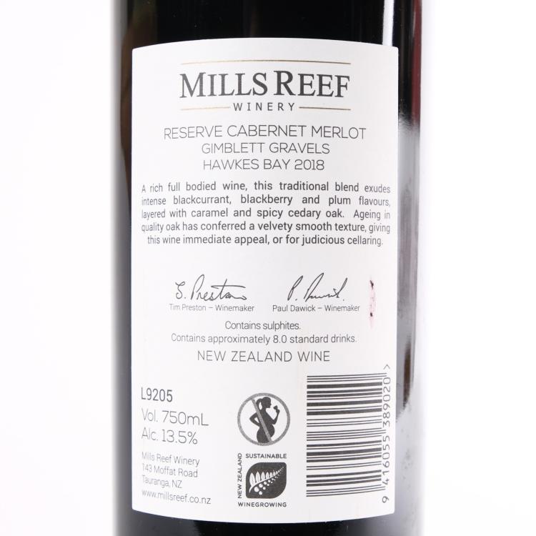 Lot 1 of 492: (1) 2018 Mills Reef Winery Reserve Cabernet Sauvignon/Merlot, Gimblett Gravels
