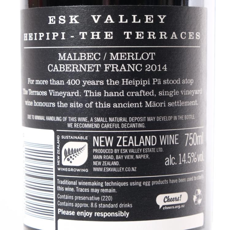 Lot 60 of 146: (1) 2014 Esk Valley Heipipi The Terraces, Hawkes Bay