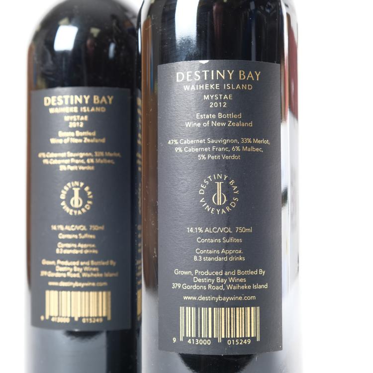 Lot 24 of 686: (2) 2012 Destiny Bay Mystae, Waiheke