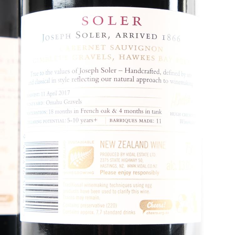 Lot 11 of 184: (2) 2017 Vidal Estate Soler Cabernet Sauvignon, Gimblett Gravels