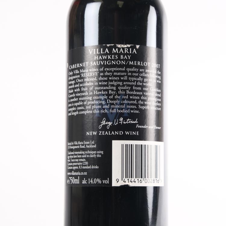 Lot 27 of 828: (1) 2007 Villa Maria Reserve Cabernet Sauvignon/Merlot, Gimblett Gravels
