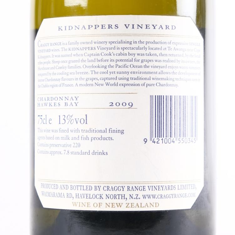Lot 29 of 111: (1) 2009 Craggy Range Kidnappers Vineyard Chardonnay, Hawkes Bay