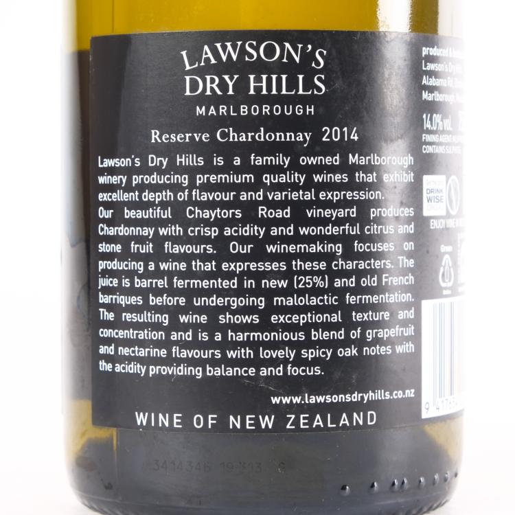 Lot 47 of 111: (1) 2014 Lawson's Dry Hills Reserve Chardonnay, Marlborough