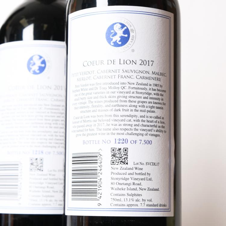 Lot 36 of 349: (3) 2017 Stonyridge Vineyard Coeur de Lion, Waiheke