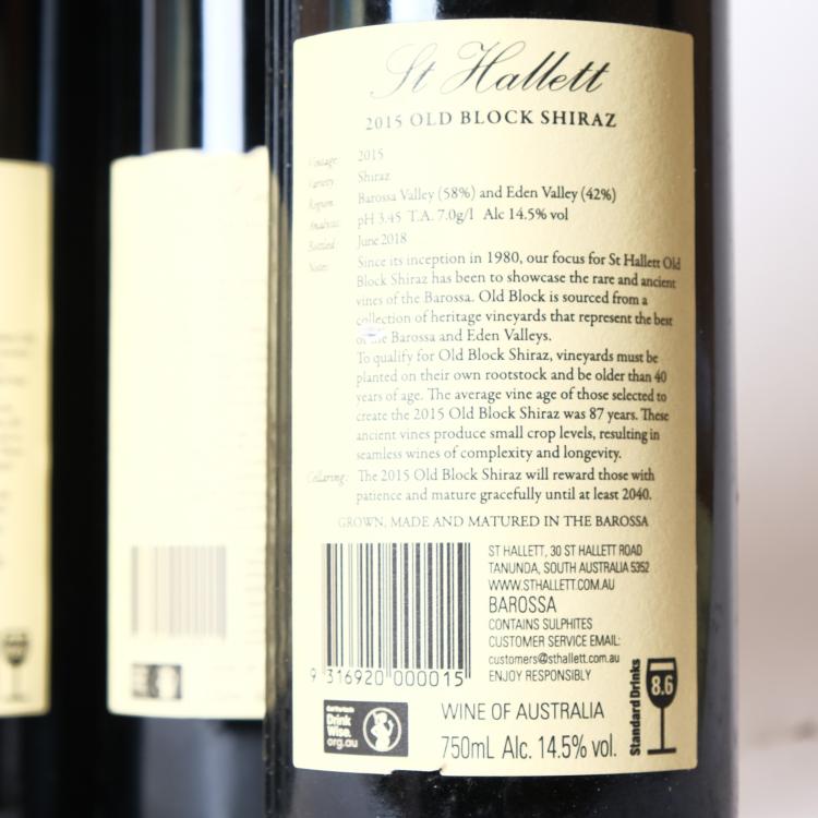 Lot 38 of 123: (6) 2015 St Hallet Old Block Shiraz, Barossa SA