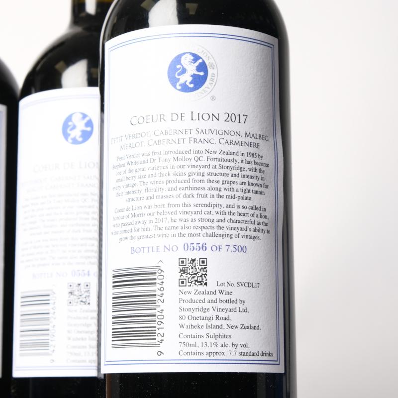 Lot 46 of 452: (4) 2017 Stonyridge Vineyard Coeur de Lion, Waiheke