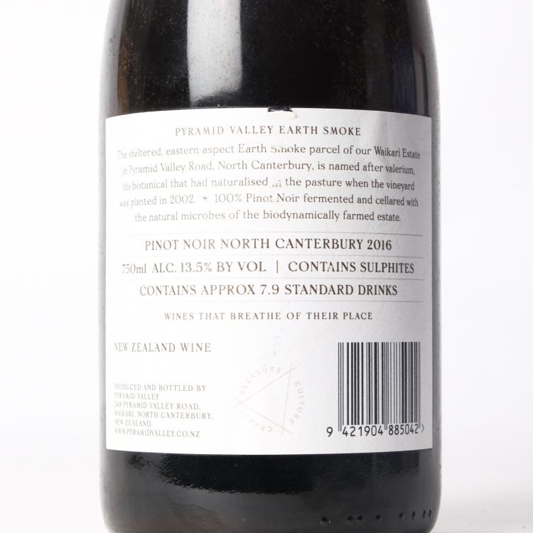 Lot 35 of 285: (1) 2016 Pyramid Valley Vineyards Earth Smoke Pinot Noir, Waikari