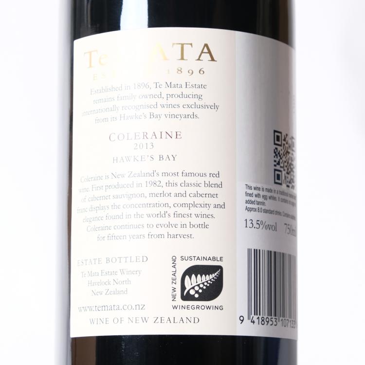Lot 53 of 407: (1) 2013 Te Mata Estate Coleraine, Hawkes Bay