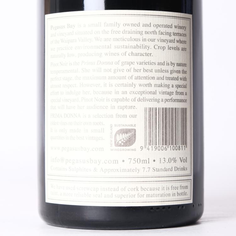 Lot 11 of 77: (1) 2013 Pegasus Bay Prima Donna Pinot Noir, Waipara
