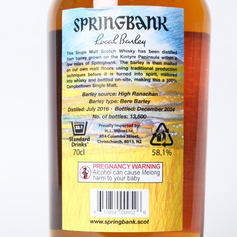 Lot 74 of 77: (1) 2024 Springbank Local Barley 8 Year Old Single Malt Scotch Whisky 700ml 58.1% abv, Campbeltown