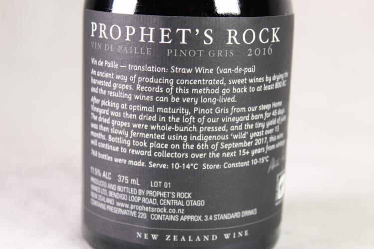 Lot 54 of 289: (1) 2016 Prophet's Rock Vin de Paille Pinot Gris 375ml, Central Otago*