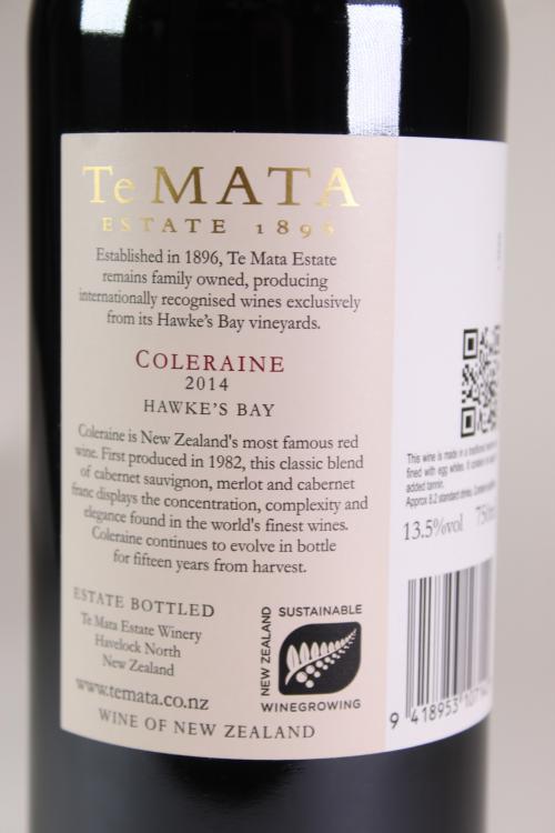 Lot 23 of 495: (1) 2014 Te Mata Coleraine, Hawkes Bay