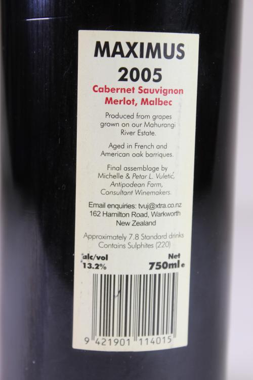 Lot 6 of 434: (1) 2005 Mahurangi River Maximus Cabernet Sauvignon/Merlot/Malbec, Matakana