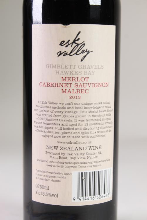 Lot 25 of 434: (1) 2013 Esk Valley Merlot/Cabernet Sauvignon/Malbec, Gimblett Gravels