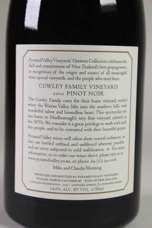 Lot 61 of 289: (1) 2010 Pyramid Valley Vineyards Cowley Family Vineyard Pinot Noir, Marlborough