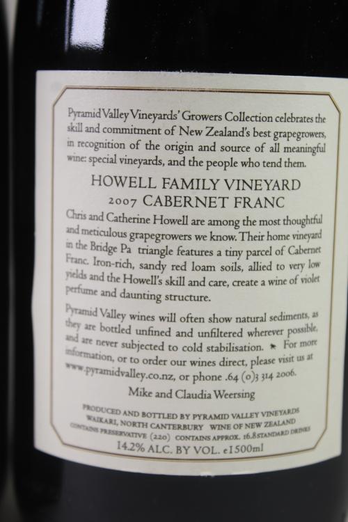 Lot 96 of 289: (3) 2007 Pyramid Valley Vineyards Howell Family Vineyard Cabernet Franc, Hawkes Bay