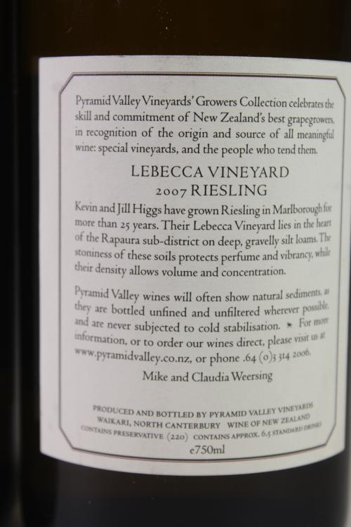 Lot 111 of 289: (2) 2007 Pyramid Valley Vineyards Lebecca Vineyard Riesling, Marlborough