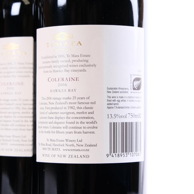 Lot 13 of 277: (6) 2006 Te Mata Estate Coleraine, Hawkes Bay