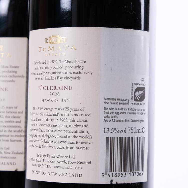 Lot 3 of 277: (2) 2006 Te Mata Estate Coleraine, Hawkes Bay