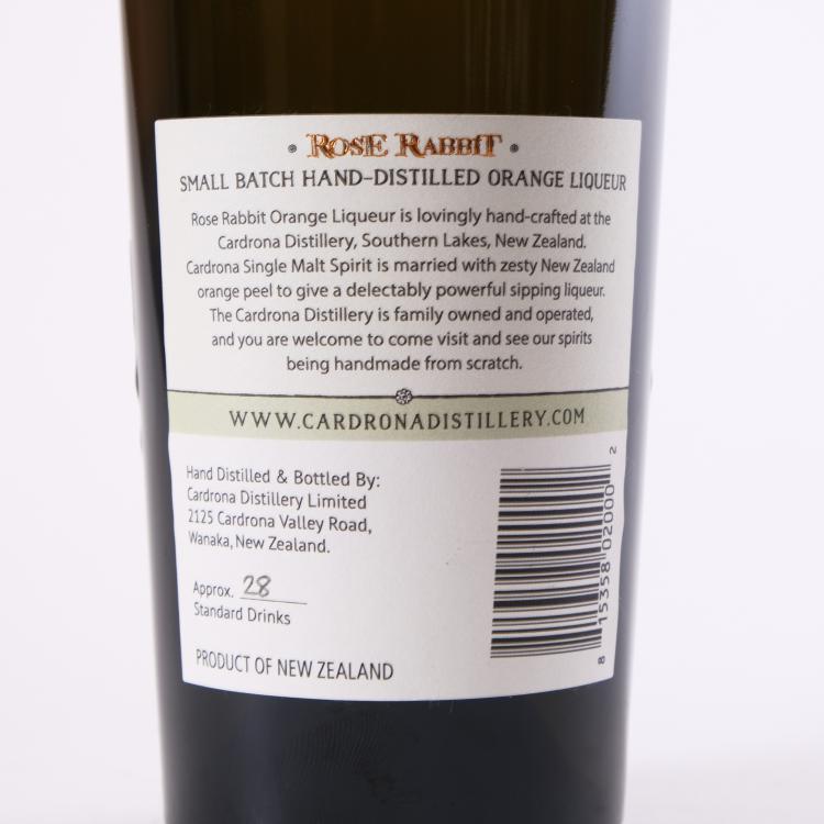 Lot 40 of 40: (1) The Cardrona Distillery Rose Rabbit Orange Liqueur, Otago 47.6% abv  750ml