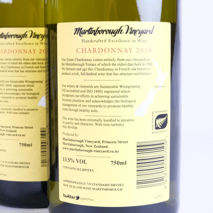 Lot 69 of 338: (6) 2010 Martinborough Vineyards Chardonnay, Martinborough