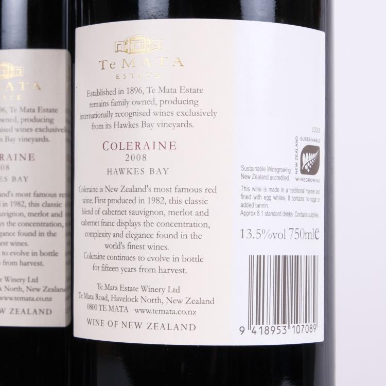 Lot 14 of 284: (12) 2008 Te Mata Estate Coleraine, Hawkes Bay