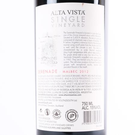 (1) 2012 Alta Vista Single Vineyard Serenade Malbec, Agrelo Argentina